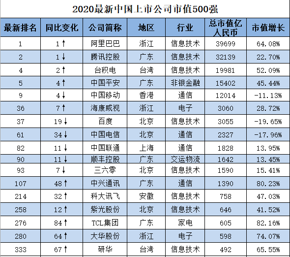 其中,中興通訊和TCL集團的市值增長都達到80%以上,而順豐控股的市值增長幅度相對小很多,而且排名還下降11位。